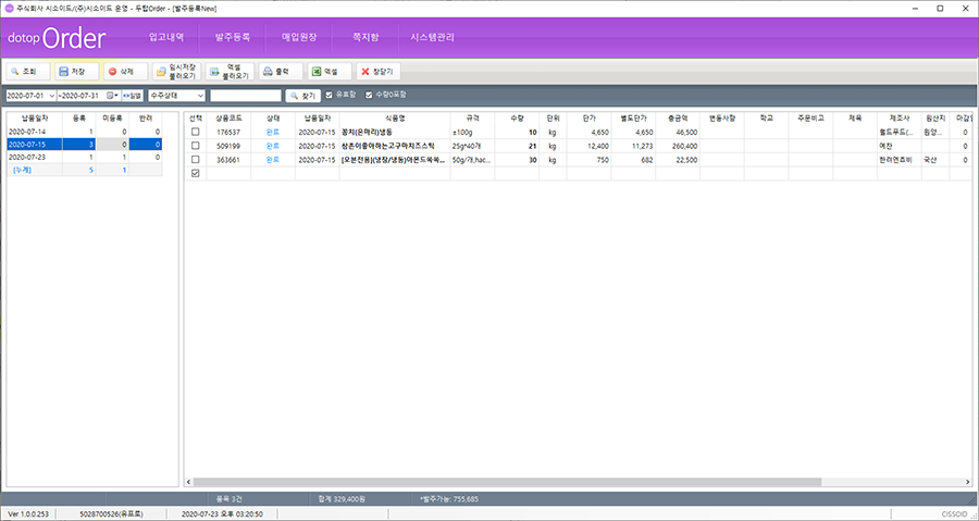 온라인으로 일자별 발주 등록을 할 수 있습니다.