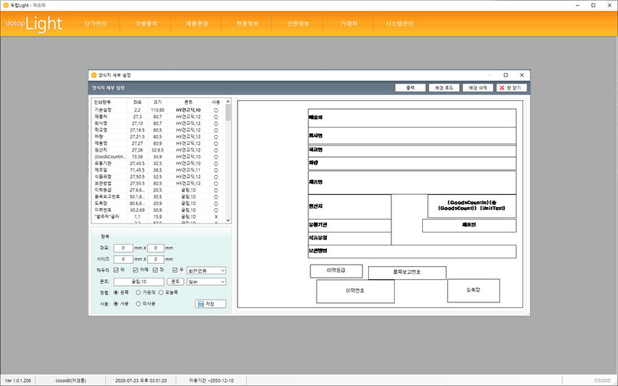 내지/외지 구분 출력, 친환경, 원산지 정보 및 사용자 양식 맞춤 설정의 라벨 출력이 가능합니다.