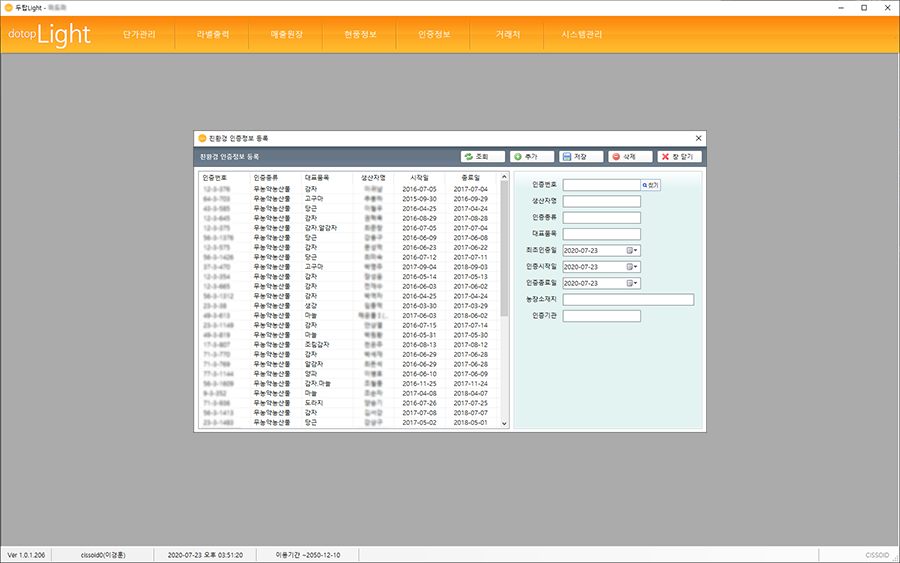 두탑Light는 다양한 라벨지 양식에 대응하고 내지, 외지 구분하여 출력이 가능합니다. 두탑ERP를 사용하는 거래처 정보만 확인하여, 조회하고 친환경인증정보를 관리할 수 있습니다.