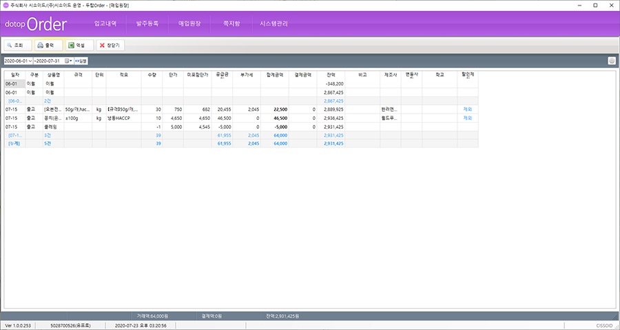 온라인으로 일자별 발주 등록을 할 수 있습니다.