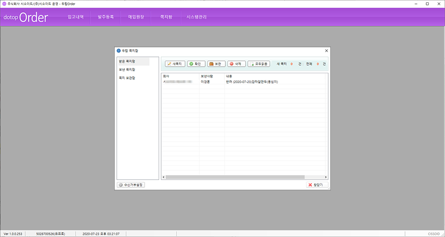 두탑ERP, 두탑Order 사용자간 쪽지 기능을 제공합니다.